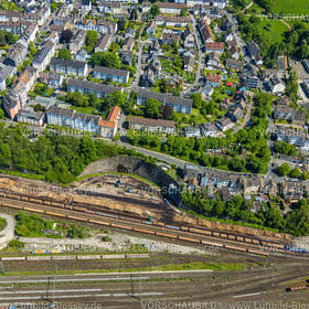 hnhof, bahnlinie, bebauu … sicht, bahnlinie mit bah