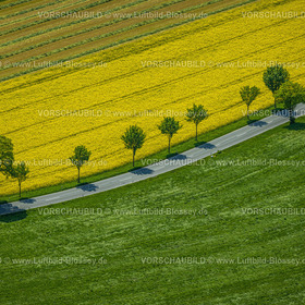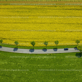 luftbild, straße, baumallee, rapsfe … ße mit baumallee und rap